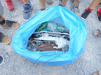 Un groupe s'est occupé du stade et ses alentours. L'autre groupe s'est rendu au terrain de pétanque et sur un chemin menant au marais. La récole fut fructueuse: 2 sacs poubelles.
